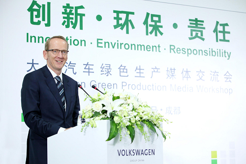 【2011年11月11日,成都】在刚刚投产的一汽-大众成都工厂,大众汽车集团(中国)总裁兼CEO倪凯銘博士表示,大众汽车的绿色生产向前再进一步,成都新工厂为中国汽车行业树立了新的环保标杆。
