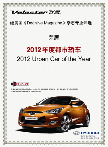 经美国《Decisive Magazine》杂志专业评选荣膺“2012年度都市轿车”(2012 Urban Car Of the Year)