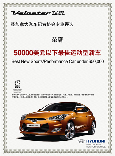 经加拿大汽车记者协会专业评选荣膺“50000美元以下最佳运动型新车”(Best New Sports/Performance Car under $50,000)