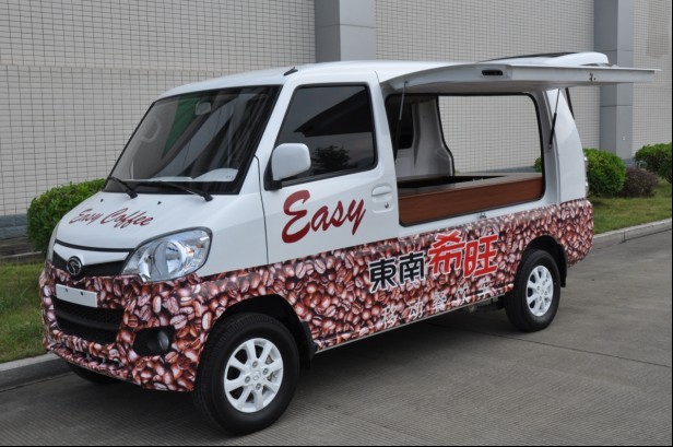 而希旺移动餐饮车则是一款专门为中小创业者量身打造的车型,其内部空间采用吧台设计模式,外观则充分考量了空间的利用性,采用欧翼式敞开车门设计,只需简单的几步操作,一辆高品质微客希旺即可变身为造型新颖的餐饮车。据悉,这种移动式餐饮车在国外早已十分风行,具有结构简单、操作方便、机动性高等优点,市场前景广阔。此外,据东南汽车工作人员透露,在广州车展期间,希旺移动餐饮车还将在现场为广大参展消费者免费供应咖啡。