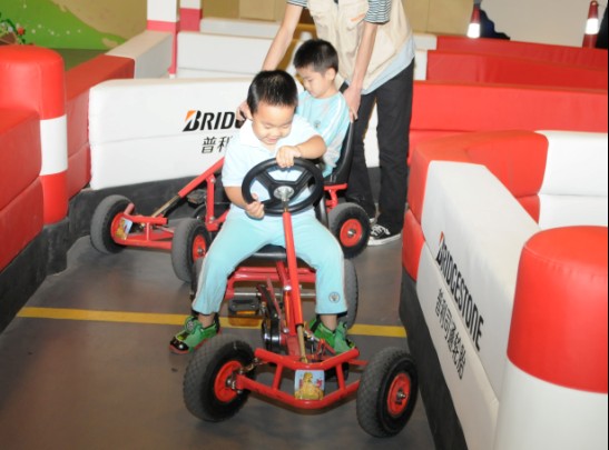 进入广州“小镇”,普利司通轮胎馆前巨大的轮胎门以及绚丽的七彩灯光深深吸引了孩子们。这个由轮胎博物馆、欢乐竞技营、车之翼模拟工作室以及仿真驾车区构成的小小国度,着实让前来体验的家长和孩子们大开眼界。一些热爱汽车的孩子已经迫不及待地踏上战车,在道路中心区交通灯的指挥下,经过模拟真实路面设计的扬尘沙区、颠簸的石路区以及各种角度的减速弯道,体会安全驾驶的重要性与必要性。来到绿意十足的轮胎博物馆,普利司通80年的品牌历程以及纷繁复杂的轮胎生产流程图解生动呈现,家长和孩子们津津有味地倾听解说人员的讲解,了解了一个曾为日本的成衣铺的小作坊如何历经80载的峥嵘岁月,成就为如今国际知名的轮胎企业;以及面向未来这位轮胎“巨人”与环境共生、与自然共生的美好愿景。博物馆的另一角,是一片生机盎然的热带丛林。孩子们坐在轮胎搭建的秋千上嬉戏玩耍,体验优美环境带来的和谐与美好。一些孩子的家长表示:通过亲身体验普利司通轮胎馆中的大人世界,让他们树立了强烈的责任感。特别是安全出行对每一个人、每个家庭以及整个社会的深远影响。