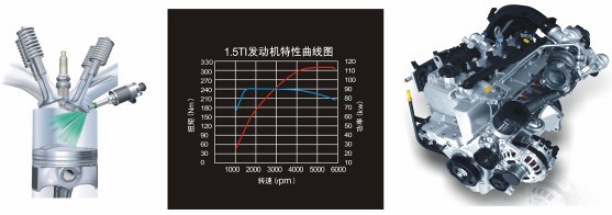有数据显示,在同等排量的发动机中,使用铝缸体发动机,能减轻20%左右的重量。汽车的自身重量每减少10%,燃油的消耗可降低6%~8%;缸内直喷技术的应用,使燃油燃烧更加充分,油耗比之普通发动机降低20%;而采用的可变气门正时技术可以合理精确分配气门开启的时间,先进的技术使得1.5TI发动机可以在很宽的转速范围内输出其最大的扭矩和功率,有效提高发动机效率和燃油经济性。