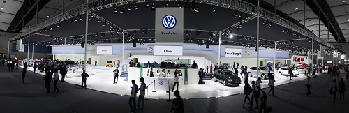 【2011年11月21日,广州】今天,第九届中国(广州)国际汽车展览会正式开幕,大众汽车品牌携上海大众、一汽-大众和大众进口汽车以30款车型组成的强大阵容亮相广州车展。大众汽车品牌以“Think Blue. 蓝·创未来”为参展主题,展台总面积达3,000平方米。