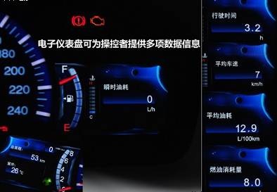 得益于CAN-BUS智能电子管家系统的装载,置于速度表中央的液晶显示器与行车电脑匹配后,能够提供包括安全带提醒、瞬时、综合油耗、续航里程等多种实用信息。