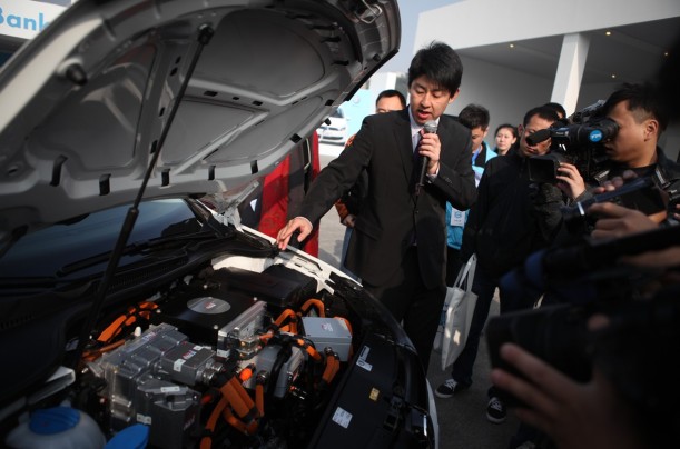 嘉宾聆听高尔夫电动车技术讲解