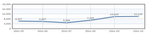 第八代索纳塔近6个月的销量变化曲线(来源:易车网)
