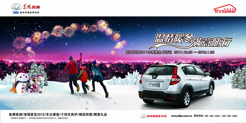此次活动,还将特别开展“幸福宣言2012”摄影主题活动,收集各种富有幸福年味的元素或与东风风神一起的幸福片段。写下新年的新感悟和愿望,或是对东风风神的祝福,一同分享新年的喜悦。参赛客户都将有机会获得精美礼物,快快行动吧!