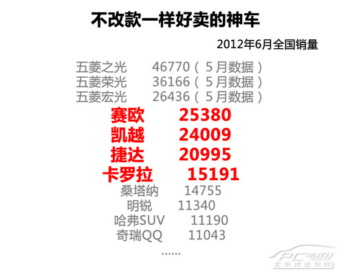 我们做汽车导购常常对读者说买新不买旧,汽车市场上也常常是“只闻新人笑,不见旧人哭”,可以说大家的目光通常都会被形形色色、光彩夺目的新车发布、上市所俘获。但凡事都有例外,纵观茫茫车市就是有那么几款生命力顽强的车型,从上市初期到如今一直霸占销量排行榜,重点是它们都不曾有大的改款。
