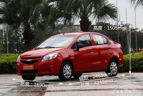 新一代赛欧与现款的乐风一样,都是出自通用的T250平台。赛欧采用三厢车的设计,其车身尺寸为:长4249mm、宽1690mm、高1505mm,而轴距方面为2465mm,整车尺寸比同为雪佛兰的新乐风还要略小一些。