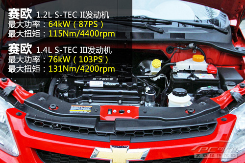 新赛欧配备1.4L和1.2L的发动机,同属S-TEC系列机型。1.2L型号为S-TEC II,曾用在乐骋、乐驰上,最大功率为64kW(87PS)。1.4L车型搭配了一台16气门的1.4L发动机,型号为S-TEC III,最大功率76kW,最大扭矩131Nm,并拥有VGIS可变进气歧管及PDA可变进气口技术,油耗肯定是有保证了。
