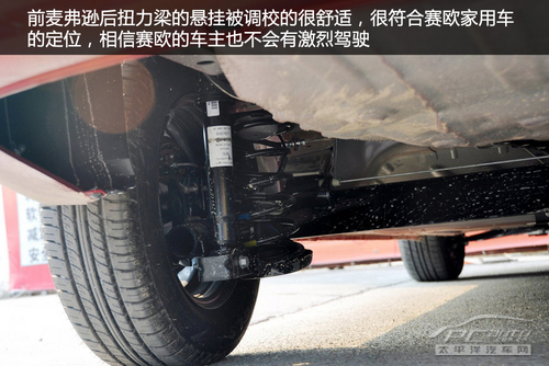 前麦弗逊后扭力梁悬挂是没有悬念了,好在赛欧将其调校得比较舒适,初段还是拥有一定韧性的,后段则显得较软,对路面起伏的过滤不能说很到位,但至少也不会想很多同价位的车型给人特别生硬的感觉。
