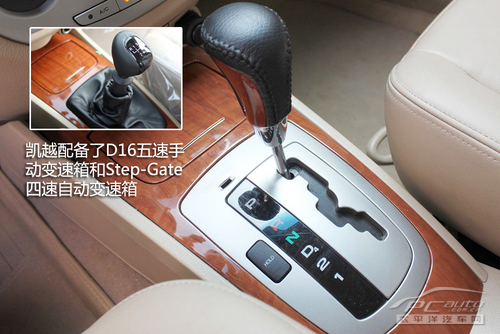 在变速箱方面,新凯越配备了D16五速手动变速箱和Step-Gate四速自动变速箱。手动变速箱无需多言,反倒是搭配的自动变速箱也能有不错的表现。