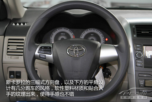 内饰上,新款卡罗拉还是有了讨好人的改动,风格变得有点运动,也更有朝气了。最引人瞩目的就是方向盘的形状向大众车的“扁圆”靠拢,外加左右两幅上的钛银装饰,比老款活力许多。