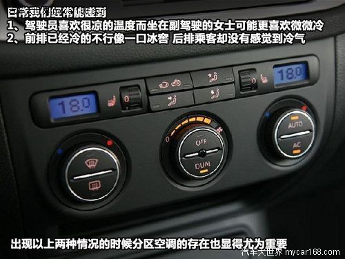 目前分区空调的可选车型还有很多,几乎现在中级车上都有配置,但大部分还都是双区空调,像508和帕萨特这样的四区空调除了豪华品牌车上经常出现,其它很少有配置四区独立空调的车型。所以非常在乎后排舒适性的消费者可以关注下,性价比当然是比亚迪G6了,比亚迪以9万的价格配置双区空调也不是头一次,以前的F6也是具备双区空调的。前排双区自动空调,后排独立出风口,雅阁和君越就是我们目前中级车比较常见的形式了,比较中庸。