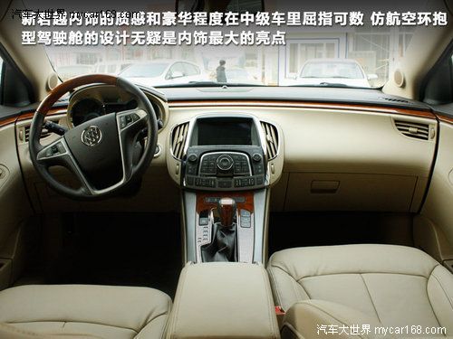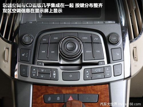 航空环抱式座舱将主副驾驶席分割成两个独立的座舱,这样的设计无疑提升了整体的内饰质感,商务气息立显无疑。米色木纹的搭配使君越在商务车领域占有一席之地。中控台就像一脉瀑布一样从7英寸的大屏幕显示屏下一泻而下,十分显档次,在中控台对于音响和空调的按键方面,新君越尽量做到使用方便,但还是因为功能太多,而略显繁杂。