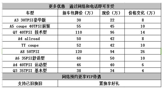 花更少的钱办更多的事,长沙奥迪品荐二手是您的明智之选,诚信之品,专业之荐。不是每一台奥迪二手都能成为奥迪认证二手车,它必须是由一汽大众奥迪销售的,使用时间不超过60个月,行驶里程不超过15万公里,无重大交通事故损伤以及重大改装,有完整的维修保养记录,并且通过110项严格检测符合奥迪认证质量要求,再通过奥迪魔术翻新的奥迪二手车。在购买之后还能享受为其12个月或2万公里(以先到为准)的有限质量担保,以及同新车客户一样的接待,24小时道路救援以及替换车服务。二手车销售专线:13272050009