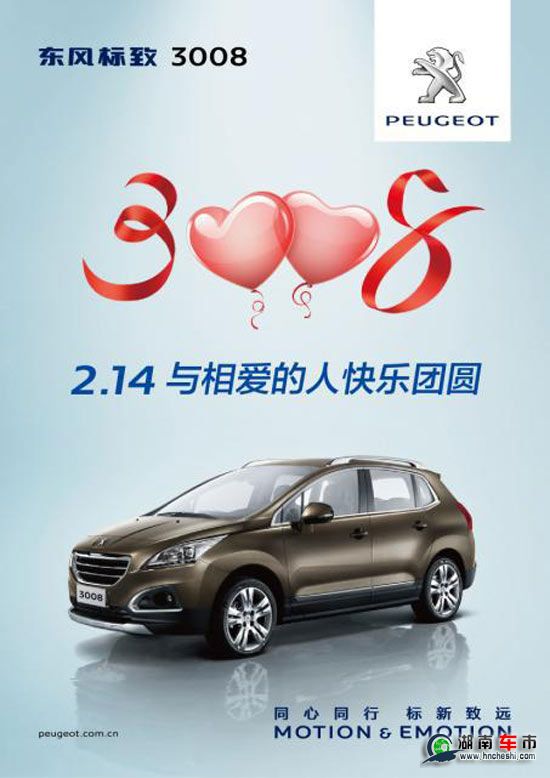 现在,2月14日“情人节”已经成为中国年轻人表达感情的重要节日,同时越来越多的外国人也都在欢度中国的传统节日。在今年这样一个“元宵节邂逅情人节”的特殊日子里,驾驶东风标致3008马上“逐乐”吧!