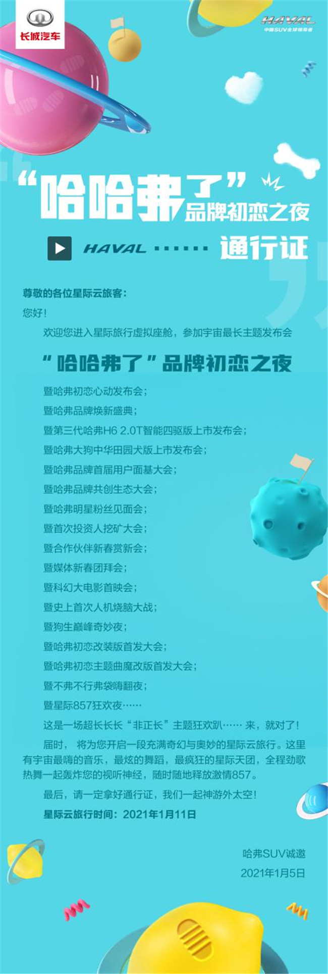 看到这里你是否已经充满了好奇?相信我,你的好奇才刚刚开始。这次活动将不仅是一次宇宙最长主题的发布会,更是汽车界的一次出圈盛会。最为关键的是,哈弗为此准备了丰厚豪礼,可谓不仅够“长”,而且够“豪”!