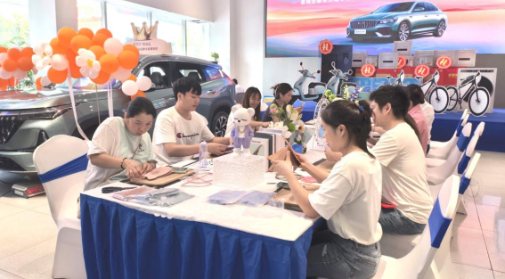 活动现场精心设置多重体验环节,让嘉宾沉浸式感受吉利品牌温度。在皮革钥匙包 DIY 区域,专业导师悉心指导下,嘉宾们亲手裁切、缝制、打磨,将传统手工艺与汽车生活美学巧妙融合,定制专属出行信物,不少嘉宾表示:“亲手制作的钥匙包搭配新车,仪式感十足”。一旁的冷餐区陈列着精致茶点与饮品,供嘉宾休憩品尝;游戏互动环节则通过趣味挑战赢取丰厚礼品,欢声笑语此起彼伏,充分调动了现场气氛。